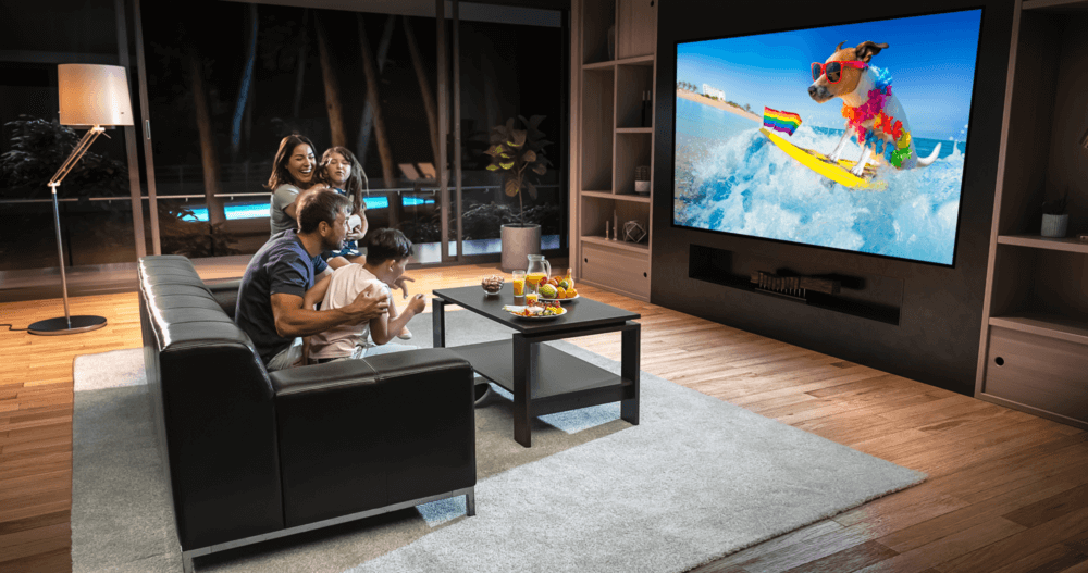 Avec la toile de projection technique DAYLIGHT 1.5, XTREM SCREEN réalise une prouesse technique unique : obtenir un angle de vision de 150° malgré un gain important sans effets négatifs (effet paillette et hot spot).
