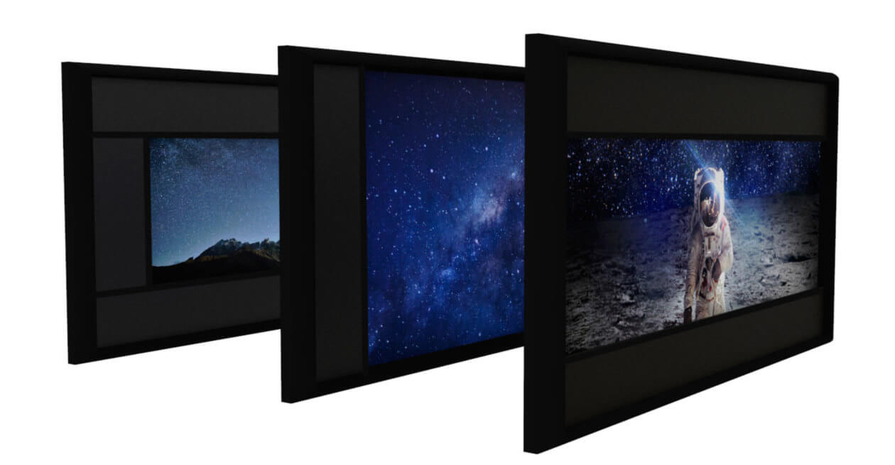 Chaque écran cadre fixe est construit dans un format d’image précis, or l’industrie du cinéma en utilise plusieurs (notamment 16/9,1.85 :1, 2.35 :1 et 2.40 :1).